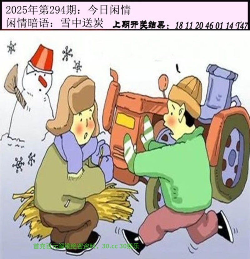 294期:今日闲情暗语:雪中送炭 解释:指下雪天给人送炭取暖;比喻在困难或危急时,给人物质或精神上的帮助。解鼠羊猴马鸡牛 综合取肖:鼠羊猴马鸡牛 |